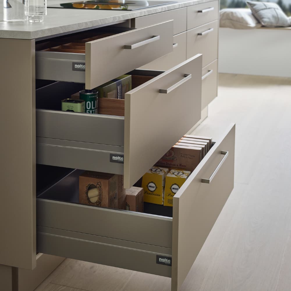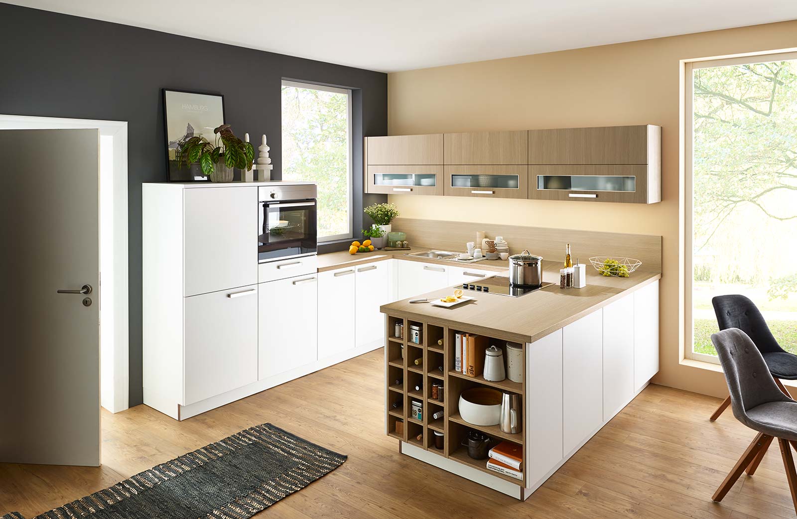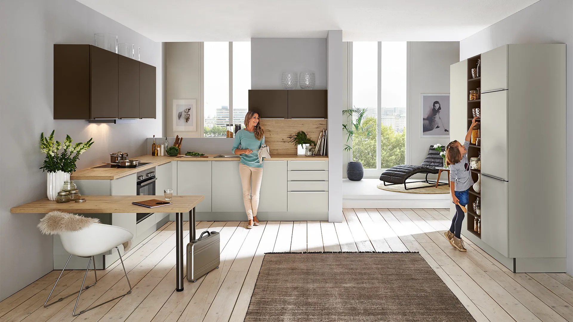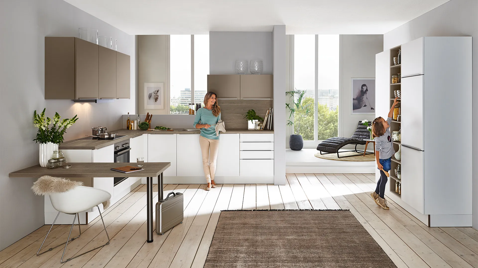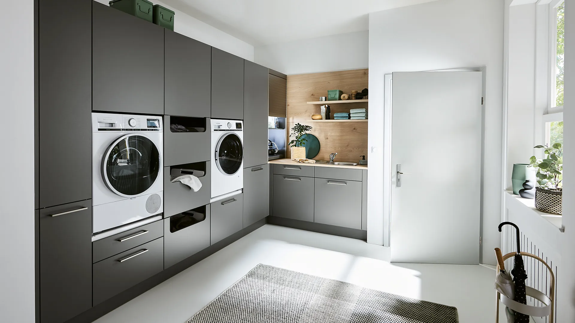 Wäschepflege, bügeln, Einkäufe verstauen, Kleidungswechsel nach der Arbeit, Altglas lagern oder was sonst noch in Ihrem Haushalt zu erledigen ist: In diesem kompakten Hauswirtschaftsraum von Nolte Küchen hat alles seinen Platz. Lassen Sie sich von Ihrem kompetenten Fachhändler vor Ort beraten!